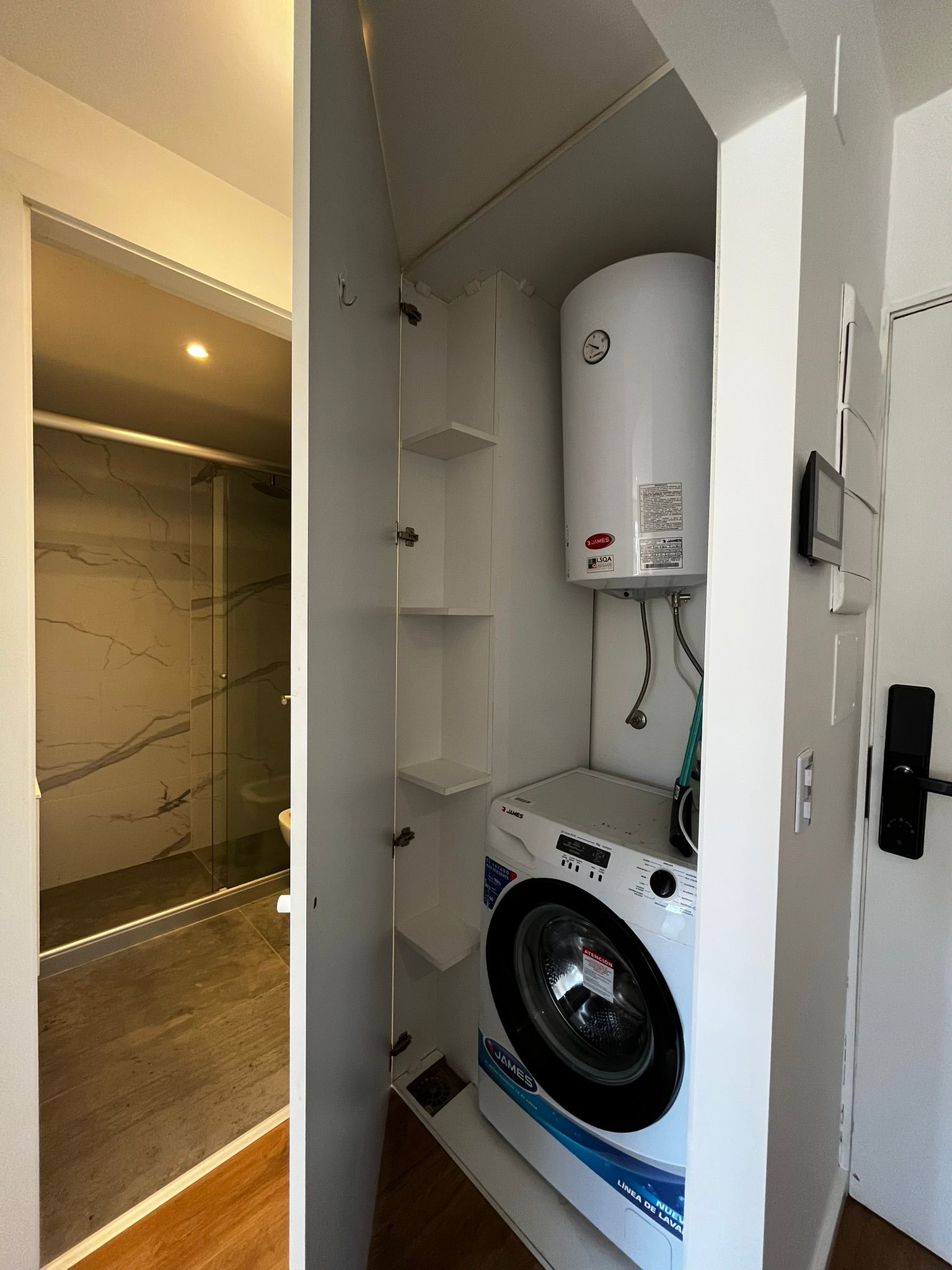 - Baño de muy lindo diseño con mampara blindex.